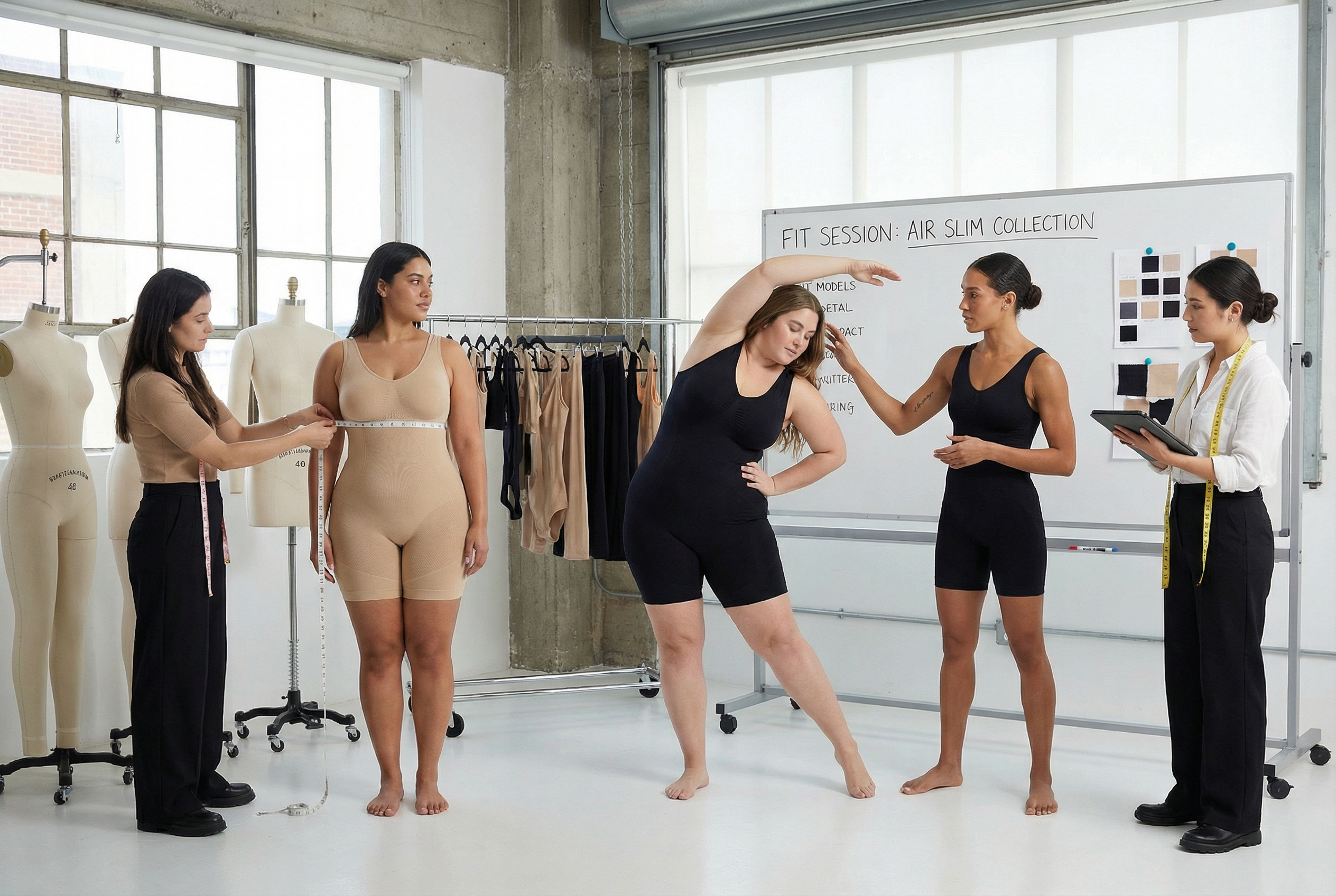 Fit and size grading are equally critical. US size expectations differ from Asian or European markets, particularly in the waist-to-hip ratio. S-SHAPER develops size grading based on multi-body-type wear testing, ensuring that air slim shapewear performs consistently from XS through plus sizes.
