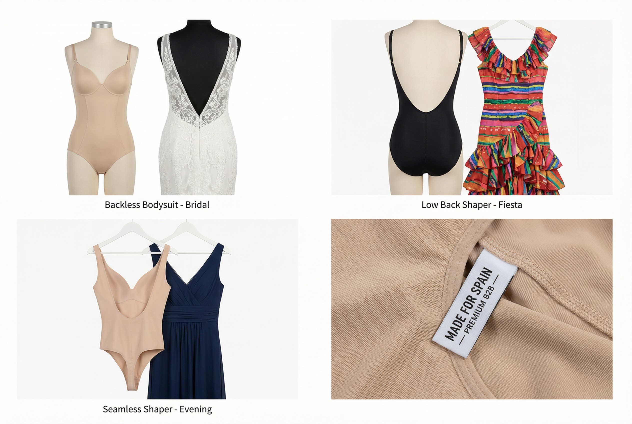 Spanish fashion places unique pressure on undergarment design. From Madrid eveningwear to Barcelona bridal studios and Andalusian fiesta collections, low-back and open-back dresses are not niche items—they are core revenue drivers. The conclusion for brands is that offering dresses without a compatible shapewear solution leaves value on the table and shifts risk to returns and negative reviews.