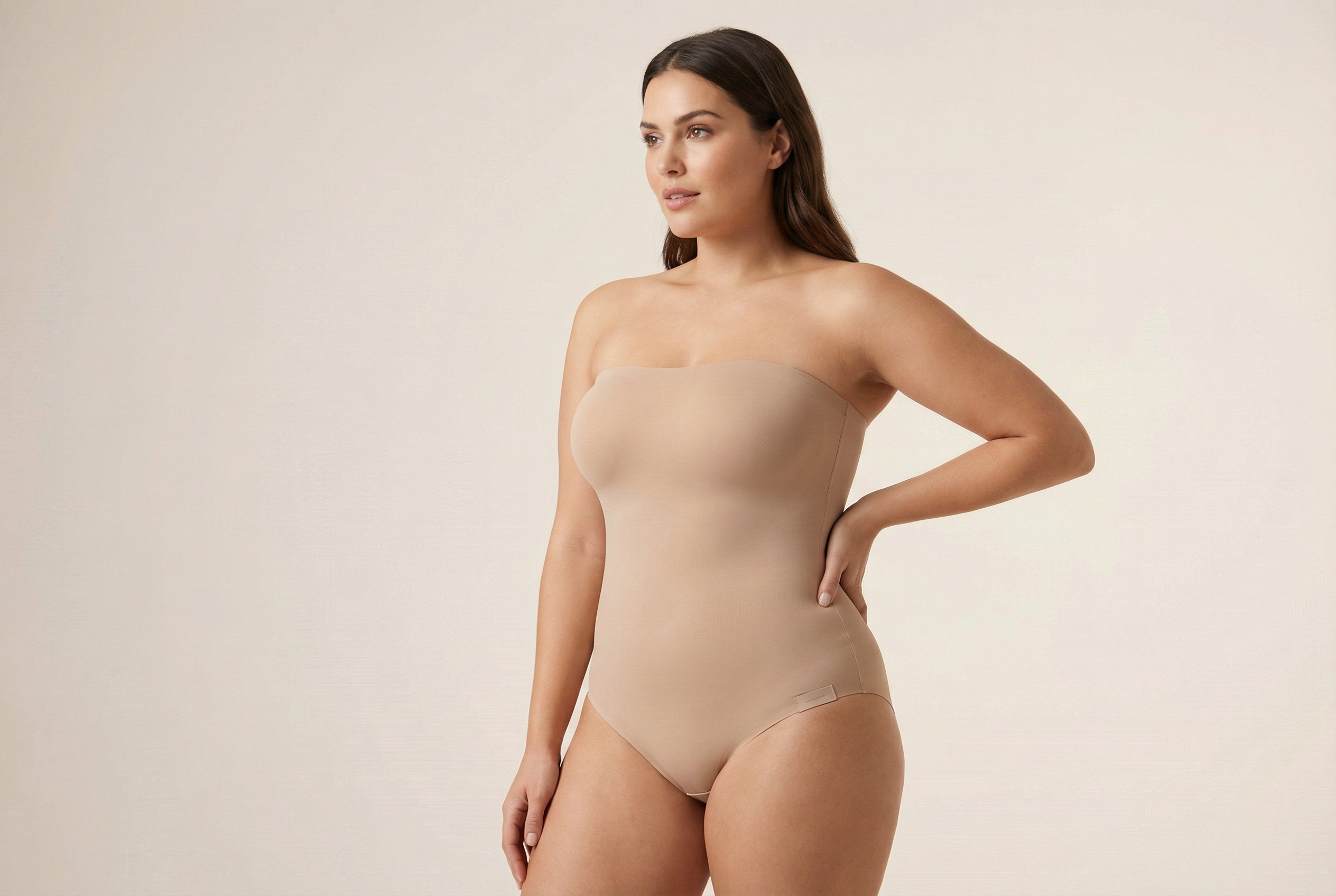 From a manufacturing perspective, these styles require integrated shaping zones rather than add-on panels. S-SHAPER develops strapless bodysuits using structured knit mapping, internal support frames, and shape systems such as C Shape and T Shape to address waist, tummy, hips, and bust in one garment. This approach reduces bulk while improving consistency across production runs, which is critical for private labels scaling nationwide.